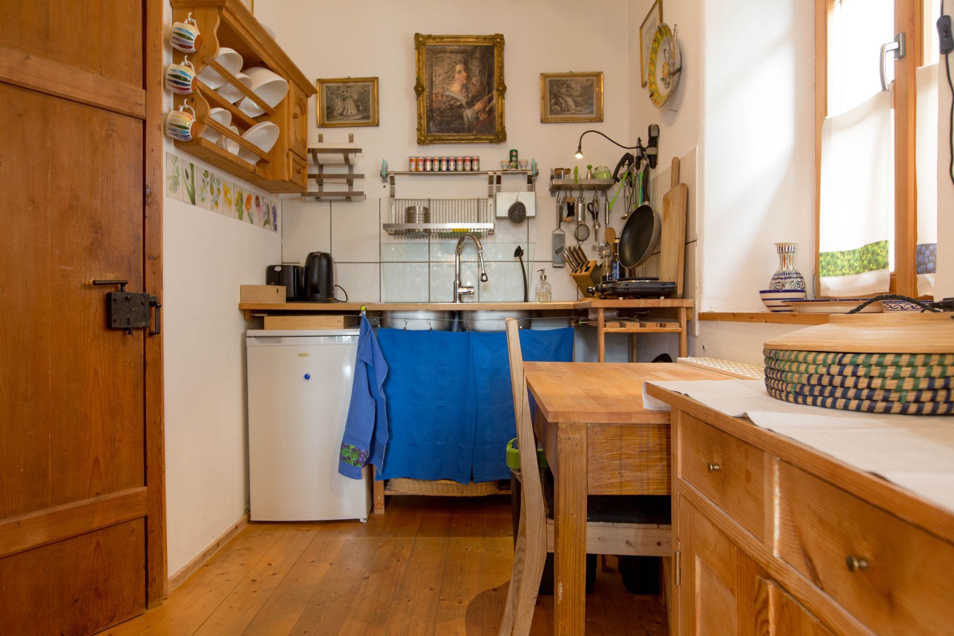 Unsere Ferienwohnung 1 besteht aus einer kleinen Küche, einem Bad und einem separaten Schlafzimmer.